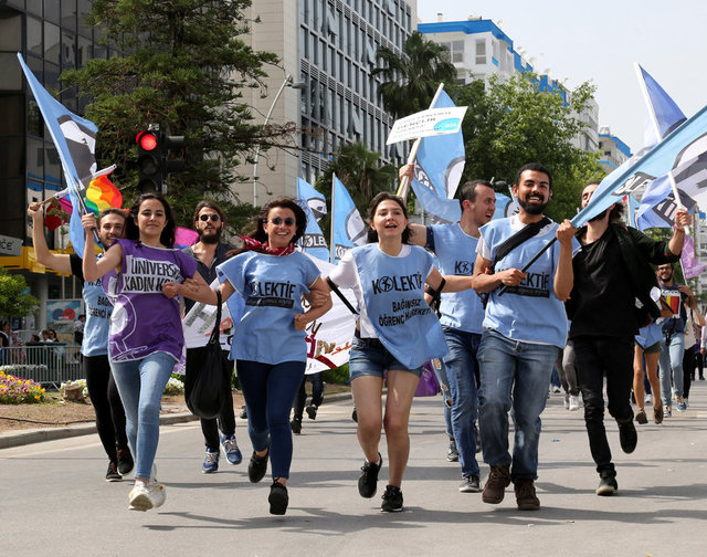 İZMİR - İzmir'de, 1 Mayıs Emek ve Dayanışma Günü kutlamaları, coşkulu başladı. Kutlamaya katılanlar gruplar, renkli görüntüler oluşturdu. İşçiler, slogan attı, başta işçi marşları olmak üzere çeşitli marşları seslendirildi.