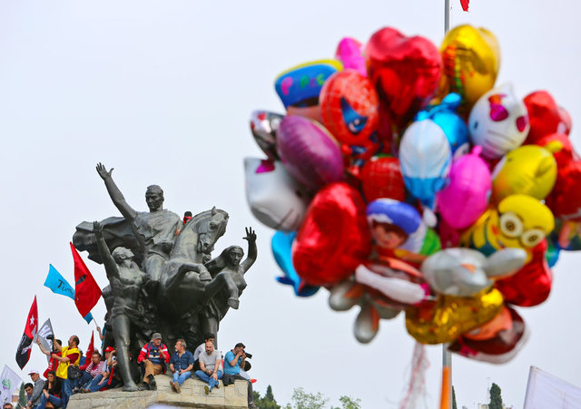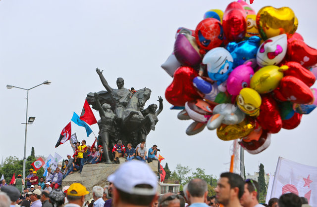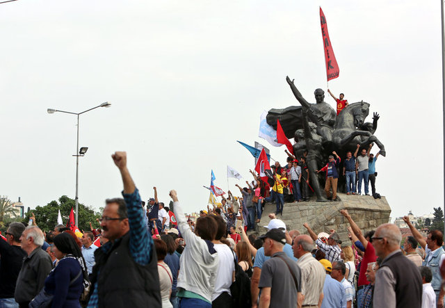 Kortejler halinde Alsancak Gündoğdu Meydanı'nda gelen işçiler, arama noktalarından geçerek içeri alındı. Bayramda 4 bin polis ve özel harekat birimleri görev yaptı. Helikopter de havadan önlem aldı.