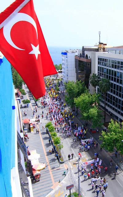 ANTALYA - Antalya'da 1 Mayıs Emek ve Dayanışma Günü kutlamaları renkli görüntüler oluşturdu.