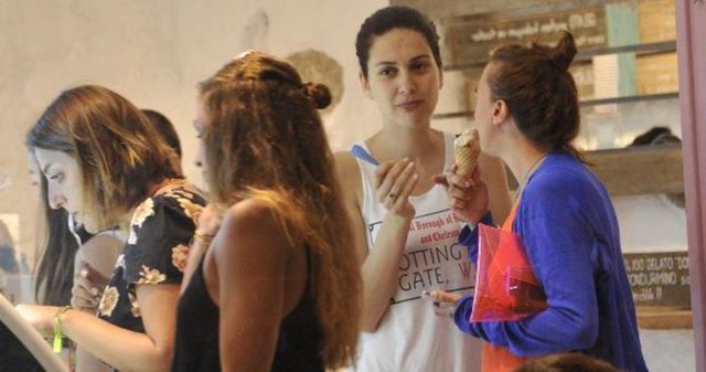 Önceki gün Alaçatı'da kız arkadaşlarıyla dondurma alırken görüntülenen oyuncu, eşi Halit Ergenç ve oğlu Ali'nin nerede olduğu sorusuna "Onlar otelde" yanıtını verdi.