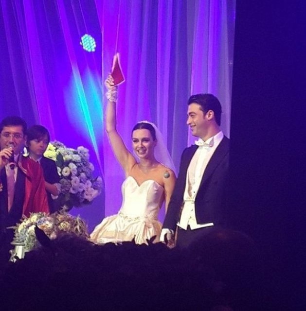 Dizide rol almaya başladıktan sonra aralarındaki ilişki aşka dönüşen ve evlilik kararı alan çift Cuma akşamı dünya evine girdi.