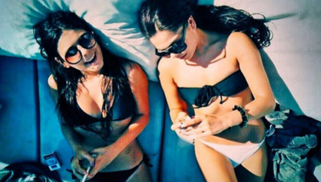Gecenin ilerleyen saatlerinde Reina'ya giden yıldız futbolcu burada takım arkadaşı Emenike ile buluşmuş ve o iki esmer güzel de Fenerbahçe'nin yıldız futbolcularına eşlik etmişti. -