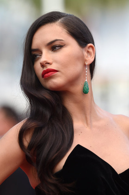 Geceye katılan siyah bir elbise tercih eden Victoria's Secret modeli Adriana Lima, gülmeyen yüzüyle geceye zorla katılmışçasına pozlar verdi.