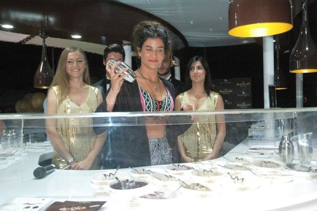Güzel oyuncu gece ise Palmalife Marina'da açılan Magnum standında Bodrum halkına dondurma dağıttı.