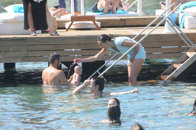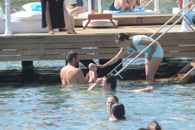 Önceki gün Yalıkavak X Beach'te görüntülenen çift, kızları Nazlı'yı ilk kez suyla tanıştırdı.