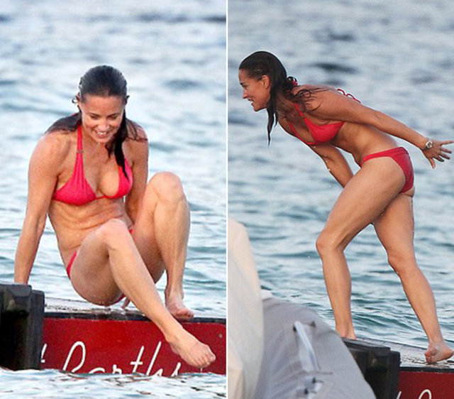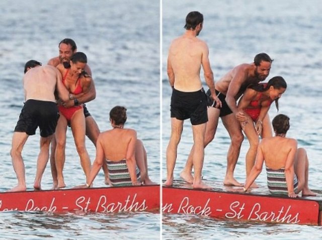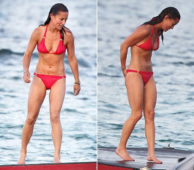 Erkek kardeşi ve bir erkek arkadaşıyla birbirlerini suya atma mücadelesi verirken objektiflere yansıyan Middleton'ı görenler, "Spor yapması işe yarıyor" yorumunu yaptı