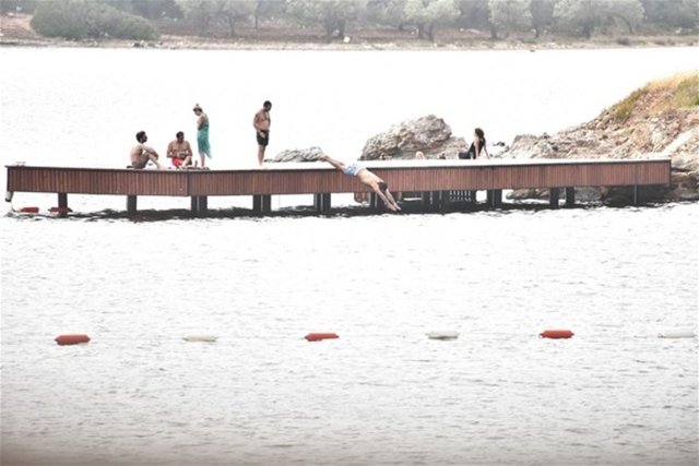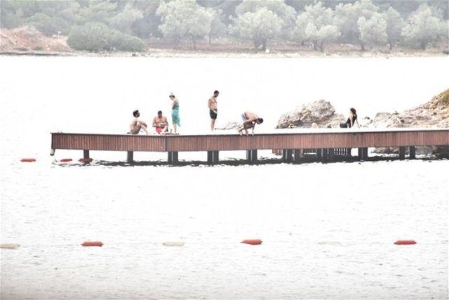 Kumsal da suyun soğukluğunu ayağı ile kontrol eden Sinem Kobal "Kenan soğuk girme" diye seslense de sözünü dinletemedi.