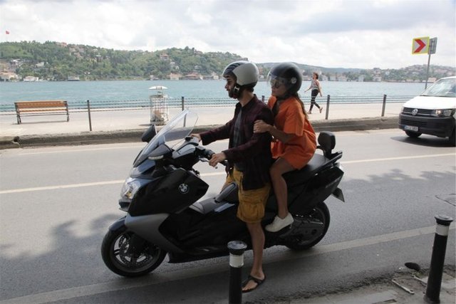 Kiraladıkları teknede tatil yapan sevgililerin sürekli şakalaşmaları ve keyifli halleri dikkat çekti.
