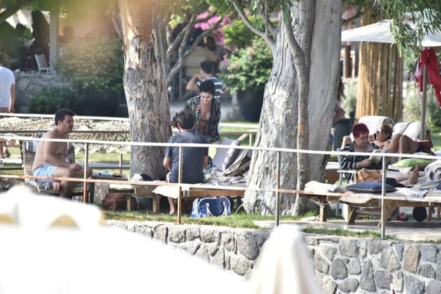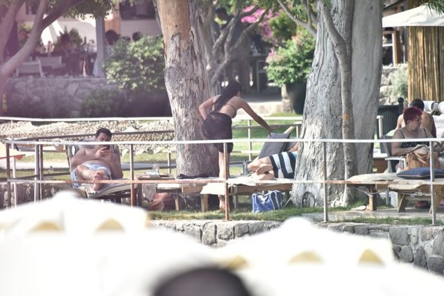 Önceki gün iki erkek arkadaşıyla Yalıkavak'ta objektiflere takılan oyuncu, bikinili görüntü vermemek için denize girmek yerine gün boyu ağaçların gölgesinde yattı.