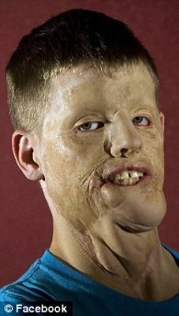 ABD'de geçirdiği bir trafik kazasında yüksek gerilim hattındaki 20 bin volt elektrikle yüzü yok olan amerikalı asker Mitch Hunter (35) 2011'de yüz nakli oldu. -