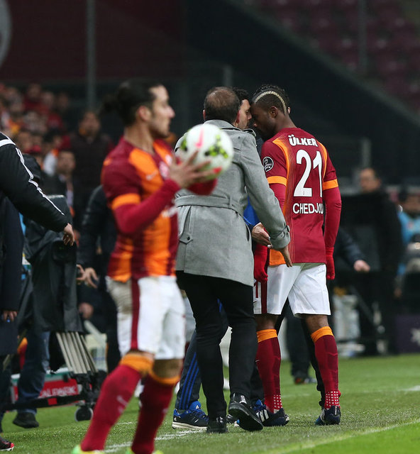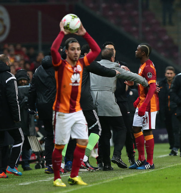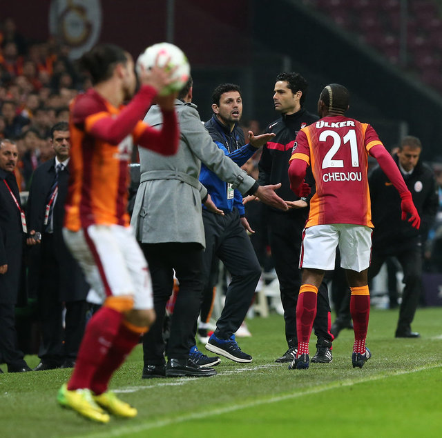 İstanbul Başakşehir teknik heyetinden Erol Bulut'un, Tarık Çamdal'ın taç atışı kullanacağı sırada bir topu kenardan sahaya doğru yuvarlaması Aurelien Chedjou'yu kızdırdı.