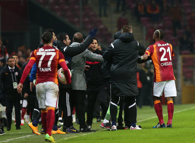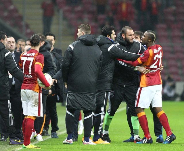 Galatasaray ile İstanbul Başakşehir arasında oynanan karşılaşmanın son dakikalarında gergin anlar yaşandı