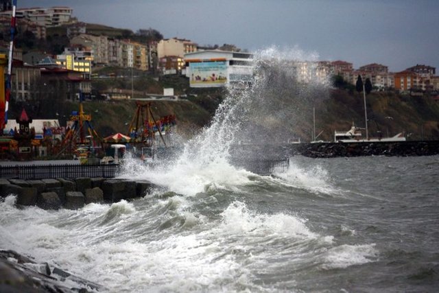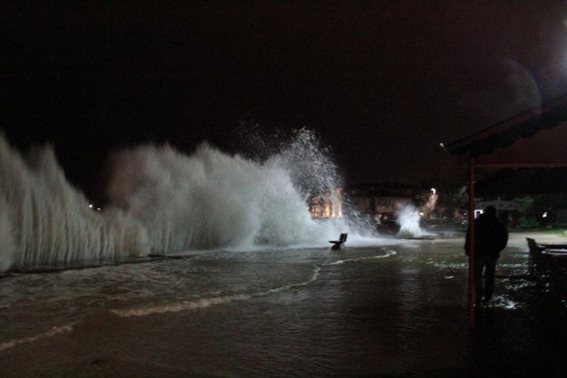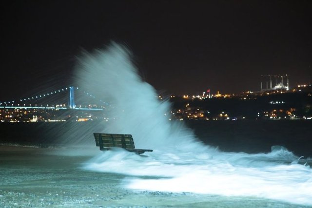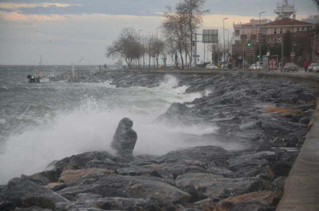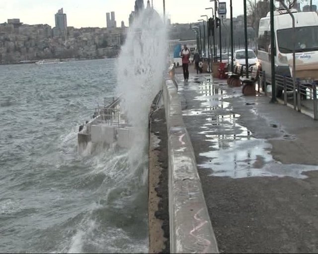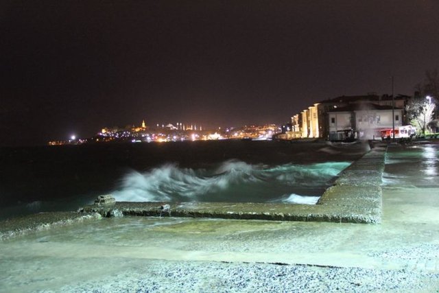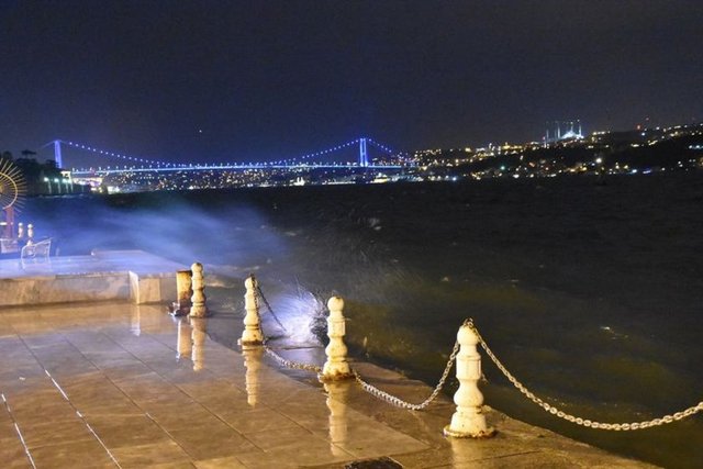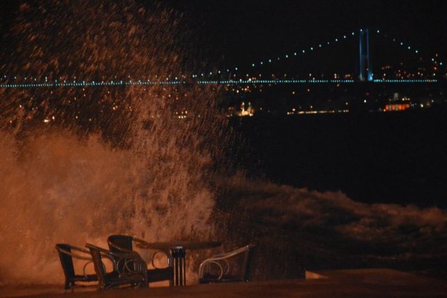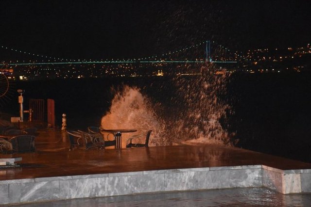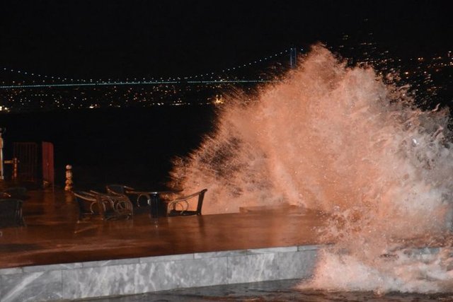 Lodos nedeniyle dev dalgaların oluştuğu İstanbul Boğazı kıyılarında, su seviyesi 3-4 metre yüksekliğe ulaştı.
