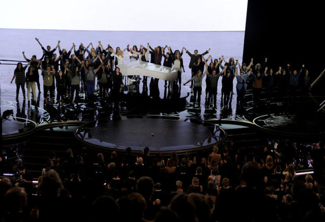 Gecede, ABD Başkan Yardımcısı Joe Biden, Beyaz Saray'ın cinsel taciz kampanyasını desteklemek amacıyla Lady Gaga'nın gerçekleştirdiği performansın anonsunu yaptı.