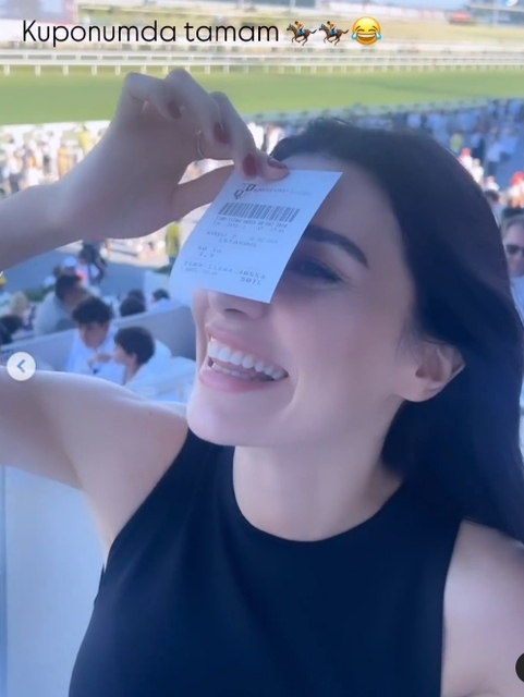 Tribünden esprili bir paylaşımda da bulunan Burcu Kıratlı, bu fotoğrafına; "Kuponum da tamam" notunu düştü.