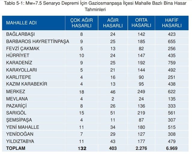 Öte yandan, orta hasarlı binaların da onarım yerine yıkılıp yeniden inşası çoğunlukla daha uygundur. Senaryo depreminde Gaziosmanpaşa’daki binaların ortalama %10’unun (yaklaşık 2.811 bina) orta ve üstü seviyede hasar göreceği tahmin edilmektedir. Yaklaşık 26.300 binanın ise, hasarsız veya hafif hasarlı olması beklenmektedir.