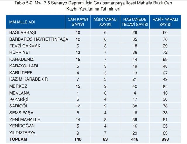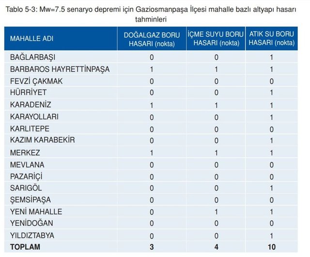 Mw=7.5 büyüklüğündeki senaryo depreminin, en kötü senaryo olan gece meydana gelmesi halinde, Gaziosmanpaşa’da ortalama 140 civarında can kaybı meydana gelebileceği, yaklaşık 83 kişinin ağır yaralanabileceği ve 418 kişinin de hastane şartlarında tedavi görmesi gerekebileceği öngörülmektedir.