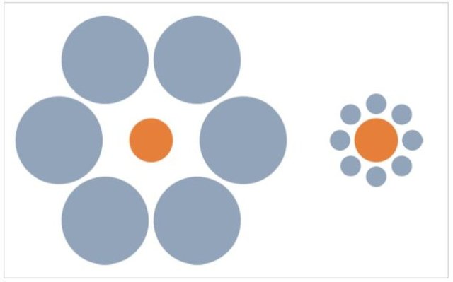 Ebbinghaus Yanılsaması olarak da bilinen bu etkinin tam mekanizması ve anlamı konusunda psikolojik çevrelerde hâlâ bir tartışma var. Esasen, soldaki turuncu daire sağdakinden daha küçük gibi görünse de gerçekte aynı boyuttadır.