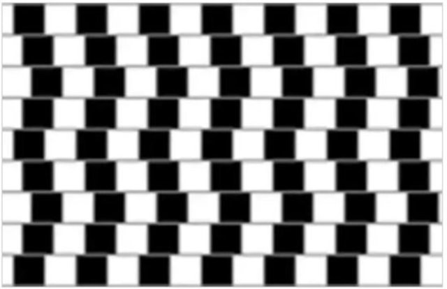 Bu optik illüzyon adını Johann Karl Friedrich Zöllner'den almıştır ve köşegen gibi görünen paralel çizgilerden oluşur. Bunun için bir cetvele ihtiyacınız olabilir.
