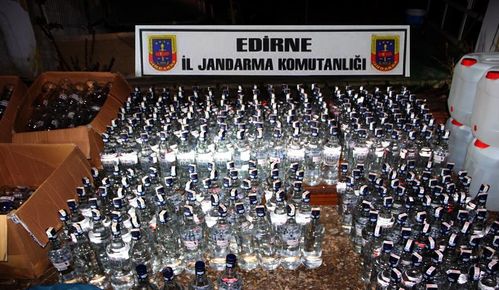 Jandarma düzenlediği baskında satışa hazır piyasa değeri 50 bin lira omlan 636 şişe sahte rakı ve votka ele geçirdi. Sahte içki üretiminde kullanılan ekipmanlara el konuldu. Edirne Jandarma Komutanlığı ekipleri sahte içki üretiminde çalışan 3'ü çocuk toplam 8 kişiyi gözaltına aldı.