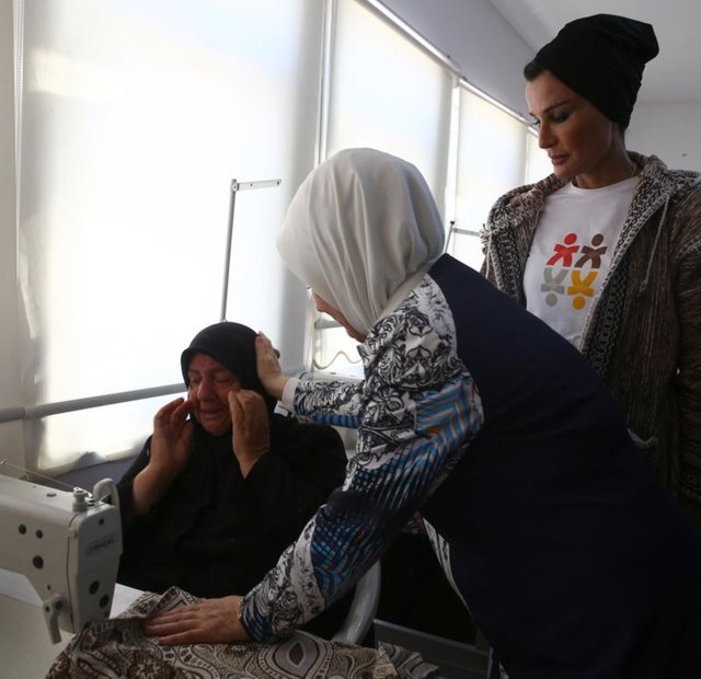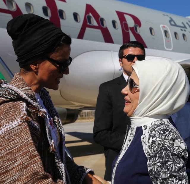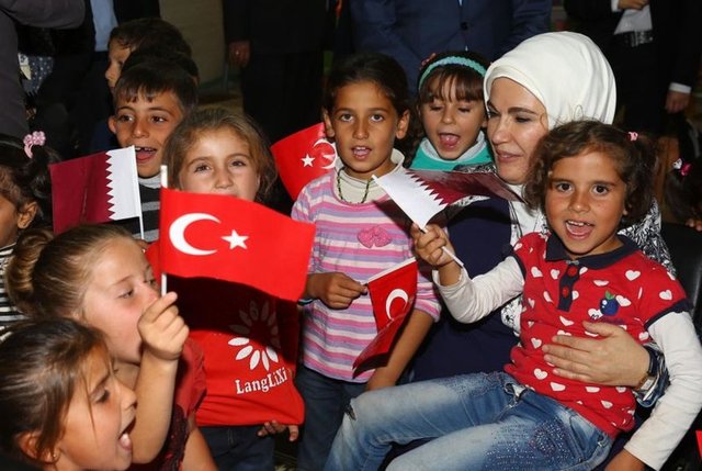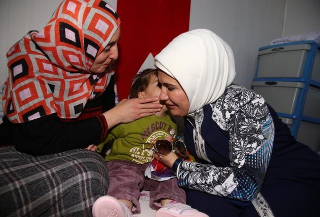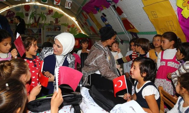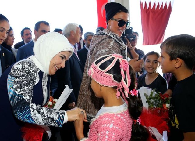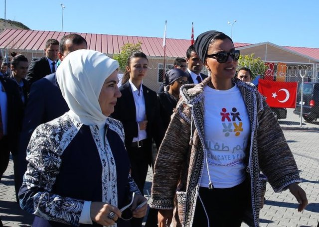 Cumhurbaşkanı Recep Tayyip Erdoğan'ın eşi Emine Erdoğan ile Katar Emiri'nin annesi Şeyha Moza, Nizip ilçesindeki konteyner ve çadır kente barınan Suriyelileri ziyaret etti.