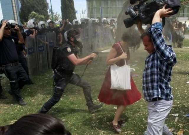 İstanbul’da Gezi Pakı’ndaki eylemler sırasında basına ‘kırmızılı kadın’ olarak yansıyan Ceyda Sungur’un yüzüne biber gaz sıkarak görevini kötüye kullandığı gerekçesiyle yargılanan polis memuru Fatih Zengin, İstanbul 73. Asliye Ceza Mahkemesi’nde hâkim karşısına çıktı. 2 yıla kadar hapis istemiyle tutuksuz yargılanan Zengin’in ilk kez katıldığı duruşmada Ceyda Sungur da bulundu.