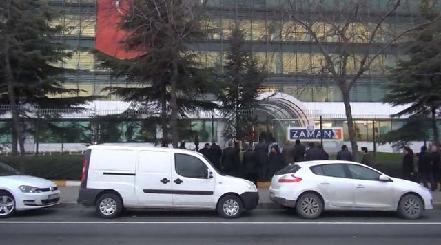 Bu arada polisler, sabah 07.15 sıralarında Yenibosna'daki Zaman gazetesi binasına geldi. Bina dışında ve içinde protestolarla karşılaşan polisler, Genel Yayın Yönetmeni Ekrem Dumanlı'ya tebligat yaparak, ifade vermek üzere Emniyet'e gelmesini istedi. Dumanlı, Emniyet'e gitmeyeceğini, gazete binasında gözaltına alınmak istediğini söyledi. Polisler, işlem yapmadan binadan ayrıldı. Daha sonra tekrar gazete binasına gelen aynı polis ekibi, Dumanlı'yı gözaltına aldı. Zaman Gazetesi Genel Yayın Yönetmeni Ekrem Dumanlı'nın evinde de arama yapıldığı belirtildi.