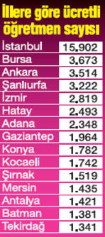 Türk Eğitim-Sen Türkiye'de ücretli öğretmenlerin sayısını belirledi.81 ilin valiliğinden ücretli öğretmen sayıları istendi ancak 12 il bilgi paylaşmadı. 69 ilin verilerine göre ücretli öğretmen sayısı 71 bin 960 oldu