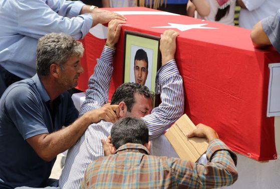 Şehit polis memuru Serdar Kazar'ın annesi Hatice Kazar da tabut başına gelerek tabuta sarılıp gözyaşına boğuldu, baygınlık geçirdi. Amcası Yusuf Kazar ise yeğeninin fotoğrafına alnını koyup gözyaşlarına boğuldu.