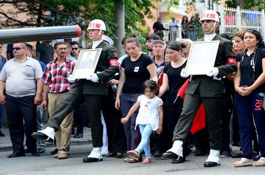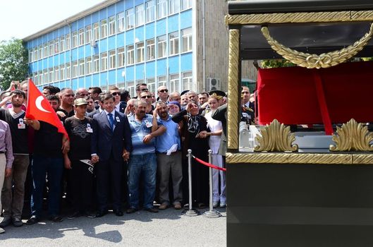 Cenaze namazının ardından Başbakan Davutoğlu, şehit babasının ve oğlunun elinden tutarak yürüdü. Oğlunun uğurlanması sırasında gözyaşlarına hakim olamayan şehidin annesi Elif Öztürk, "Yavrum, kuzum benim, oğlum gel. Bak bütün komutanların burada" diyerek asker selamıyla uğurladı. Bu sırada güvenlik tedbirleri nedeniyle cami avlusuna az sayıda alınan vatandaşlar dev Türk bayrağı açarak, "Şehitler ölmez vatan bölünmez" sloganlarıyla teröre tepki gösterdi.