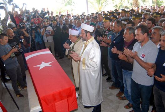Cuma namazını müteakip kılınan cenaze namazı sonrasında konuşan İzmir Müftüsü Ramazan Muslu, şehitlere karşı son görevlerden birinin de ülkenin birliğini, bütünlüğünü korumak olduğunu söyledi.