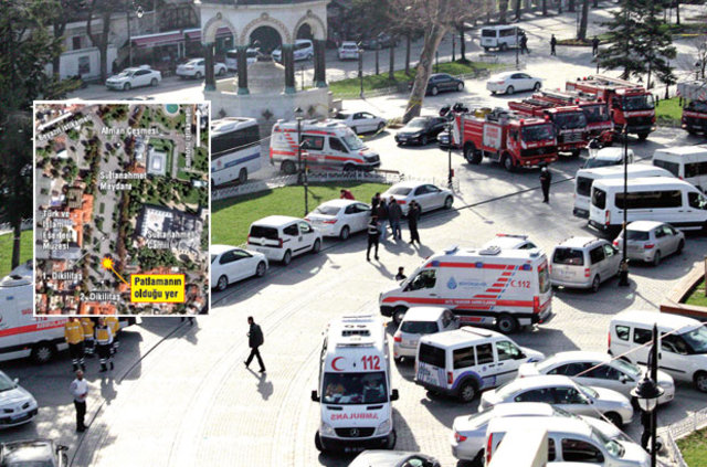 Alman turist grubunun meydanda olduğu sırada ‘canlı bomba’ kanlı eylemini gerçekleştirmek için üzerindeki patlayıcıları harekete geçirdi. Sultanahmet Meydanı’nda kulakları sağır eden bir patlama yaşandı.