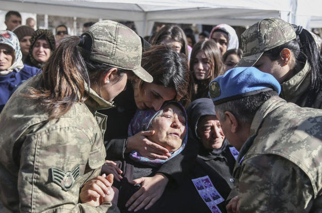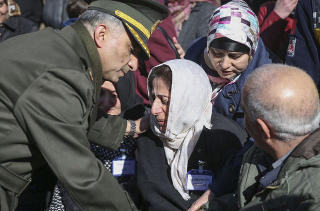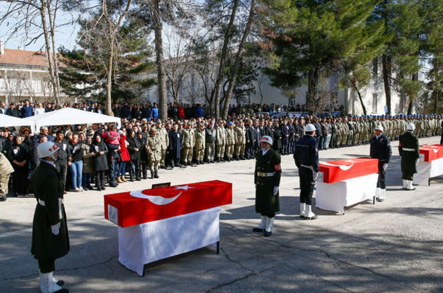 Konuşmaların ardından şehitler için dualara edilirken yakınları ve silah arkadaşları gözyaşlarına boğuldu. Katafalktaki cenazelere koşan şehitlerin aileleri sinir krizleri geçirerek tabutlara sarılarak bir süre ağlayarak feryat etti.