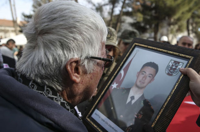 Şehitlerin tabutlarını, fotoğraflarını öpen yakınları daha sonra tabut başlarından güçlükle alınabildi. Şehitler askerlerin omzunda ambulanslara konularak memleketlerine uğurlandı. (DHA)