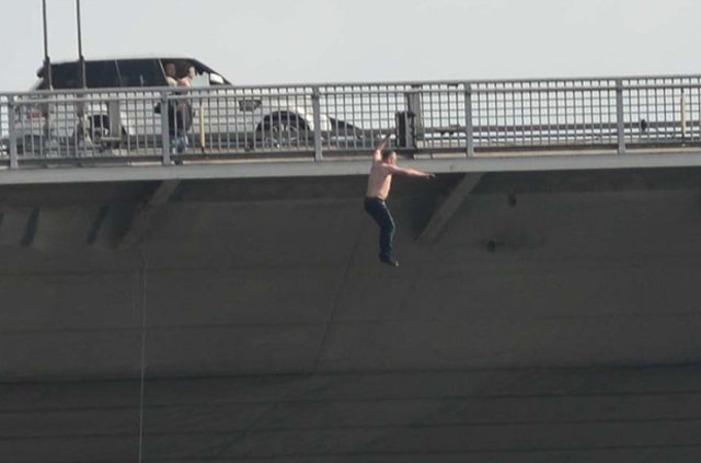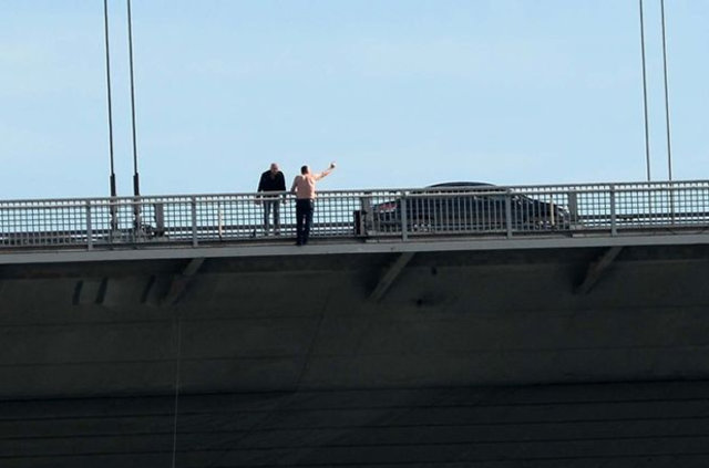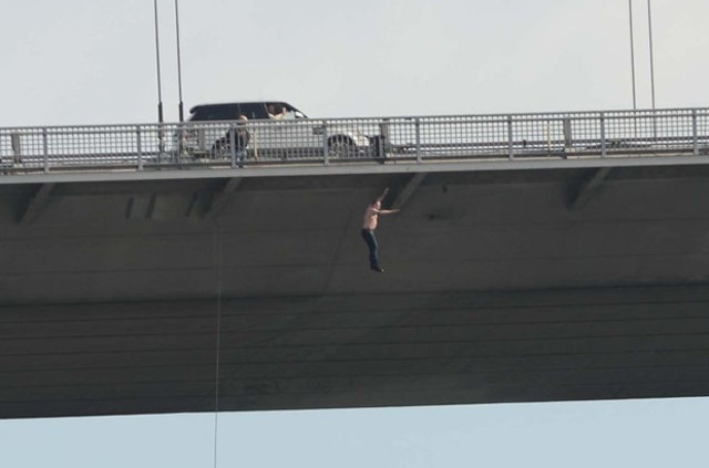 Erol Çetin, Boğaziçi Köprüsü'nde Anadolu Yakası yönü Ortaköy ayaklarında saat 09.30 sıralarında korkuluklara çıkmıştı.