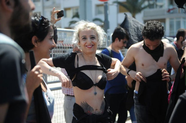 Erkeklerden ise 3'ü iç çamaşırlarıyla, 13'ü de belden yukarıdaki tişörtlerini çıkartıp geçtiği saptandı. Polisin üstsüz kalan iki kadın ve iç çamaşırıyla geçen üç erkek hakkında yasal işlemleri yaptıkları belirlendi.