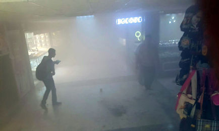 Havai fişeklerin patlaması nedeniyle çok sayıda dükkanda hasar ve yoğun duman oluştu.