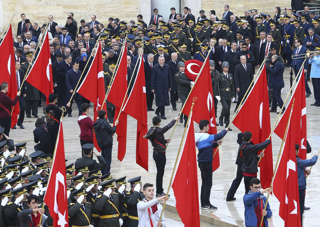 Cumhuriyet'in kuruluşunun 93. yıldönümünde Cumhuriyet Bayramı kutlamaları geceden başlarken, Cumhurbaşkanı Recep Tayyip Erdoğan ve devlet erkanı Anıtkabir'i ziyaret etti