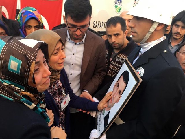 Şehidin baba evinin önündeki törenin ardından Kaymakam Fatih Safitürk'ün cenazesi Sakarya Valiliği'nin önüne getirildi.