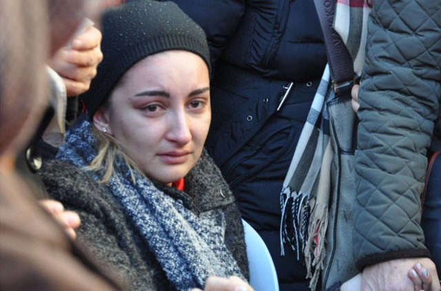 Cenazeye çevik kuvvet polislerinin kolunda gelen nişanlısı Sezen Arseven'in güçlükle ayakta durabildiği gözlendi.