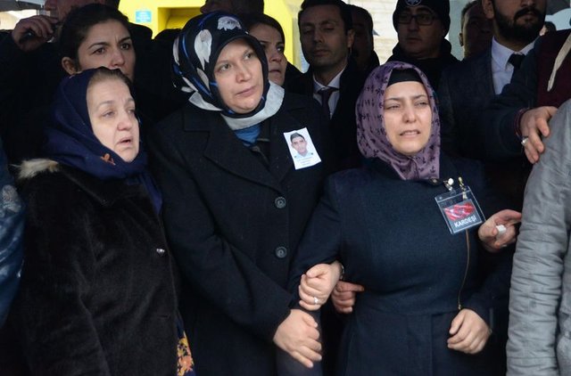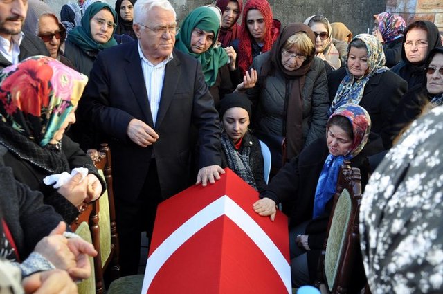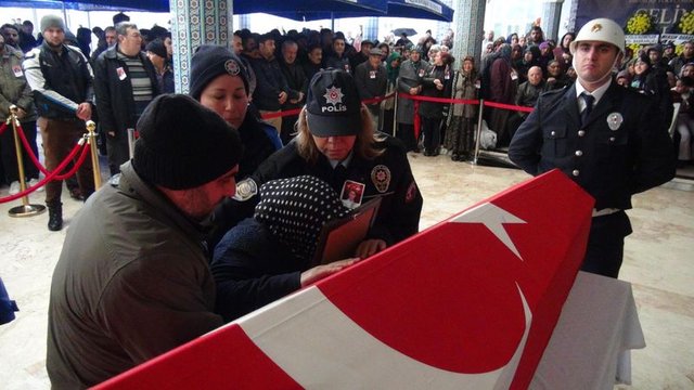 Bakan Elvan'ın eşi Zeliha Elvan, Vali Çakacak'ın eşi Kevser Çakacak ile kadın polisler, tören boyunca acılı anne ile ablanın elini tutarak, teskin etti.