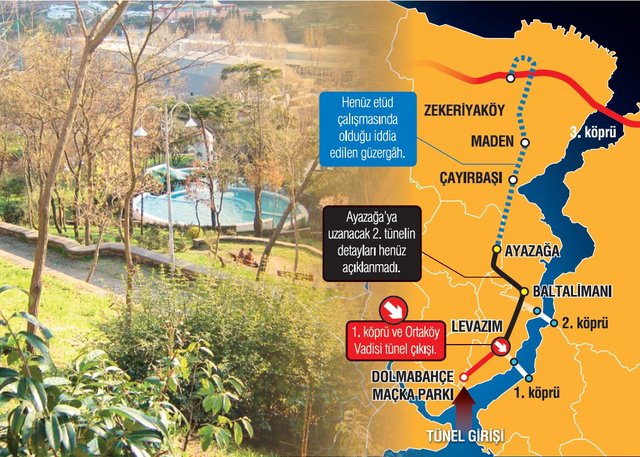 Beşiktaş’tan Sarıyer’e kadar aralıklı olarak yerüstünden de ilerleyen ve etüt çalışmaları devam eden tünel hattının Maden bölgesinde yeniden yeraltına girerek Zekeriyaköy’ün altından geçmesi ve Üçüncü Köprü’yle birleşerek yerüstüne çıkacağı iddia ediliyor.