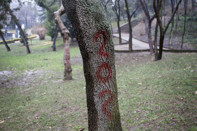 Haber merkezimizden Erdem Şahin’in objektifine yansıyan bu karede parktaki bazı ağaçların kesildiği görülüyor.