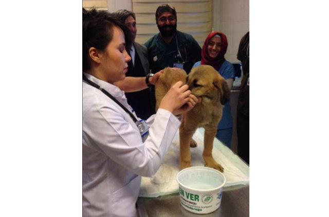 "Kuyu" adı verilen yavru köpek, kurtarılmasının ardından İBB Veteriner Hekimleri tarafından sağlık kontrolünden geçirildi.