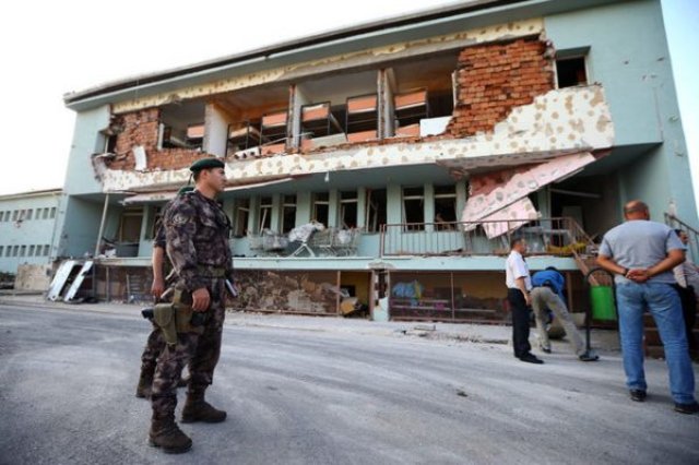 Saat geceyarısını 33 saniye geçtiği sırada pilot Uğur Uzunoğlu ile birlikte F-16 kullanan şüpheli Hüseyin Türk, bir adet bombayı Gölbaşı'ndaki Emniyet Genel Müdürlüğü Özel Harekat Daire Başkanlığına attı. Olay sonucu 44 kişi şehit oldu, 36 kişi yaralandı, başkanlıkta 6 milyon 341 bin 879 lira zarar oluştu. Saat 00.02'de MİT helikopterlerle tarandı.