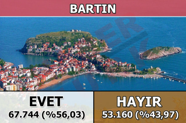 Bartın'da 1 Kasım 2015 seçimlerinde yüzde 64,3 oy alan "evet cephesi", halk oylamasında yüzde 56,03 oy aldı