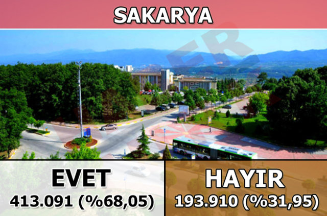Sakarya'da 1 Kasım 2015 seçimlerinde yüzde 80,4 oy alan "evet cephesi", halk oylamasında yüzde 68,05 oy aldı