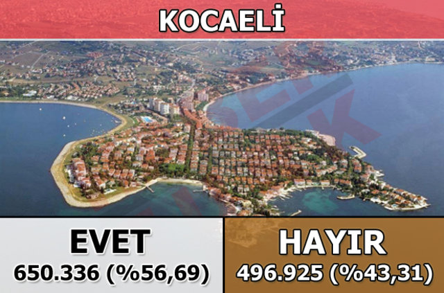 Kocaeli'de 1 Kasım 2015 seçimlerinde yüzde 68,3 oy alan "evet cephesi", halk oylamasında yüzde 56,69 oy aldı