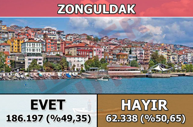 Zonguldak'ta 1 Kasım 2015 seçimlerinde yüzde 40,4 oy alan "hayır cephesi", halk oylamasında yüzde 50,65 oy aldı