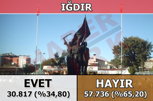 Iğdır'da 1 Kasım 2015 seçimlerinde yüzde 55.47 oy alan "Hayır Cephesi", halk oylamasında da yüzde 65.20 ile seçmenin tercih ettiği taraf oldu
